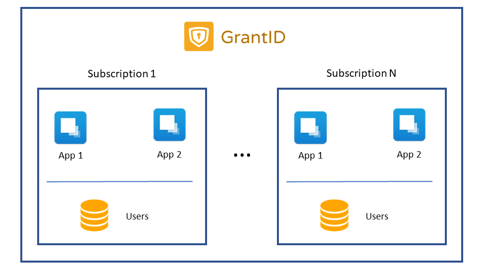 Each subscription has it's own users, applications and settings as you can see in the diagram below: